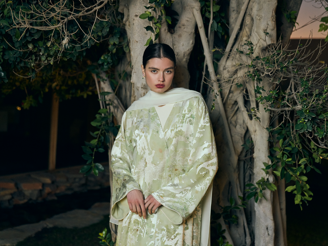 The collection is inspired by gardens after dark and translates that atmosphere through deeper color palettes, rich textures, and sculpted silhouettes.