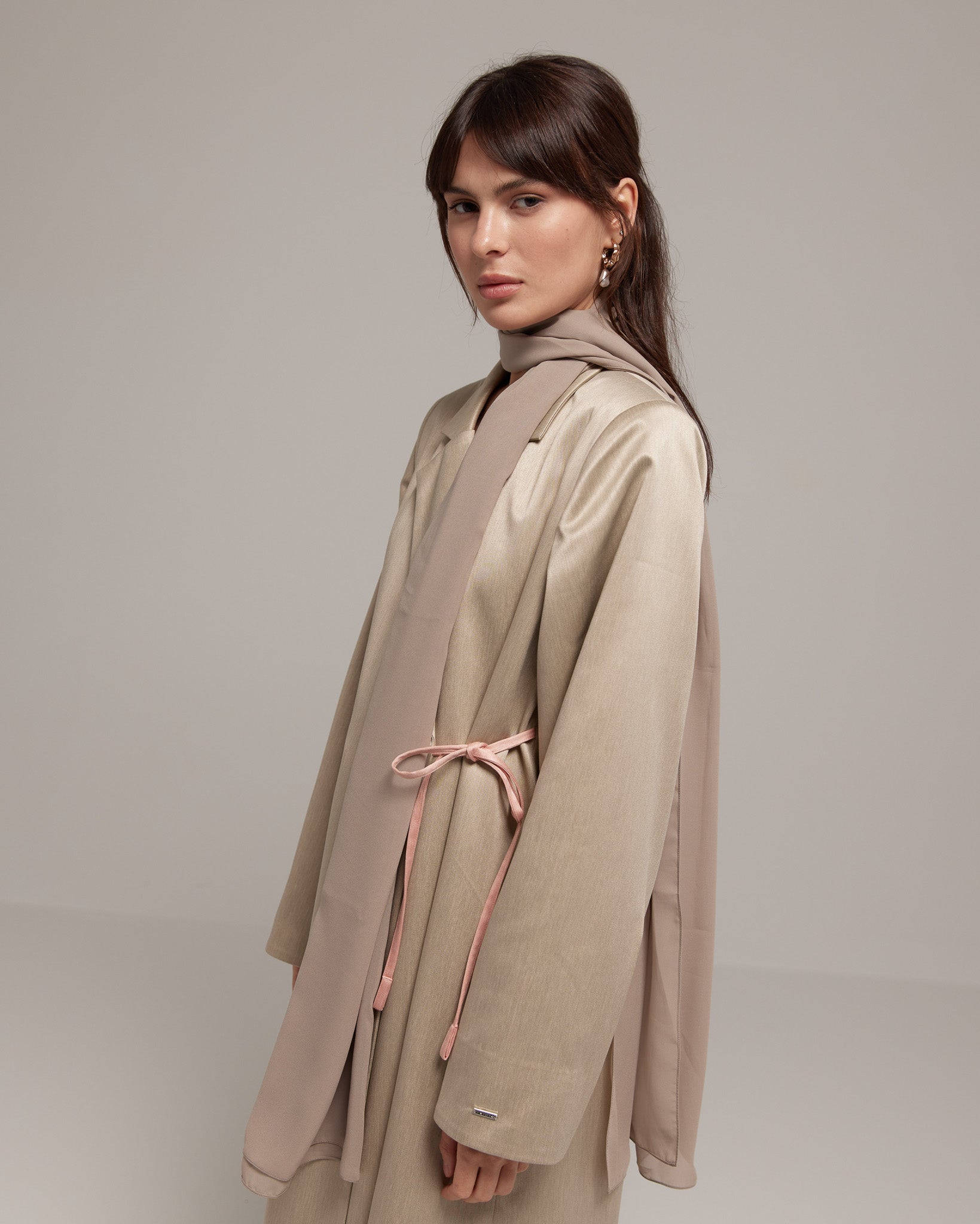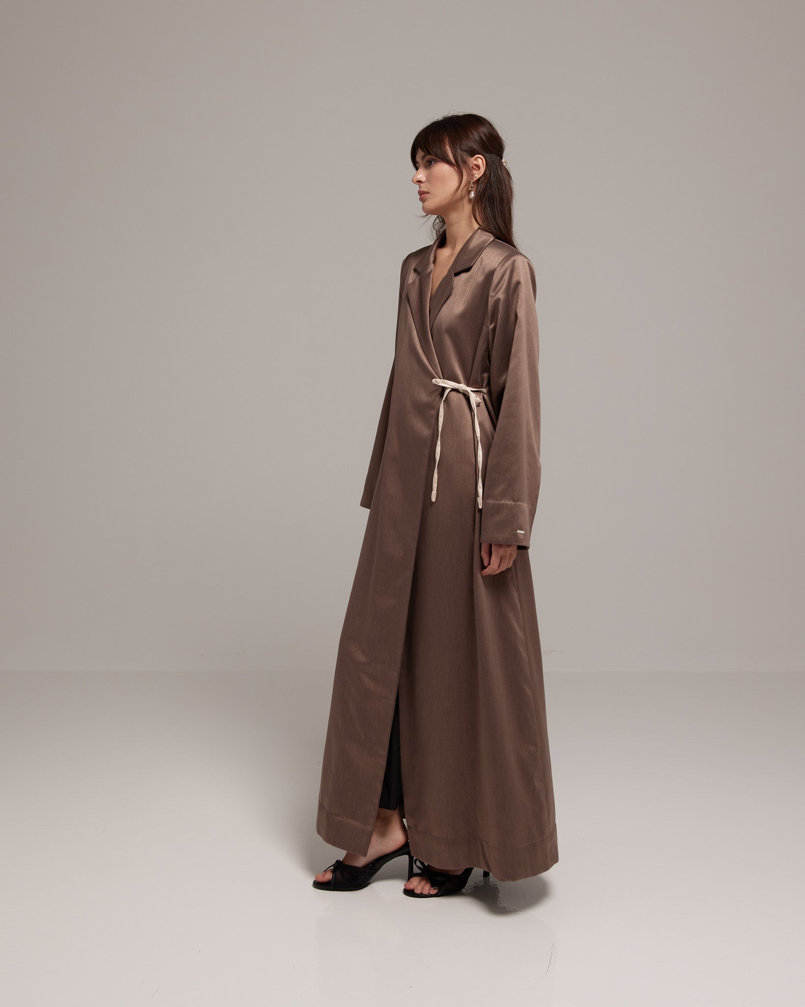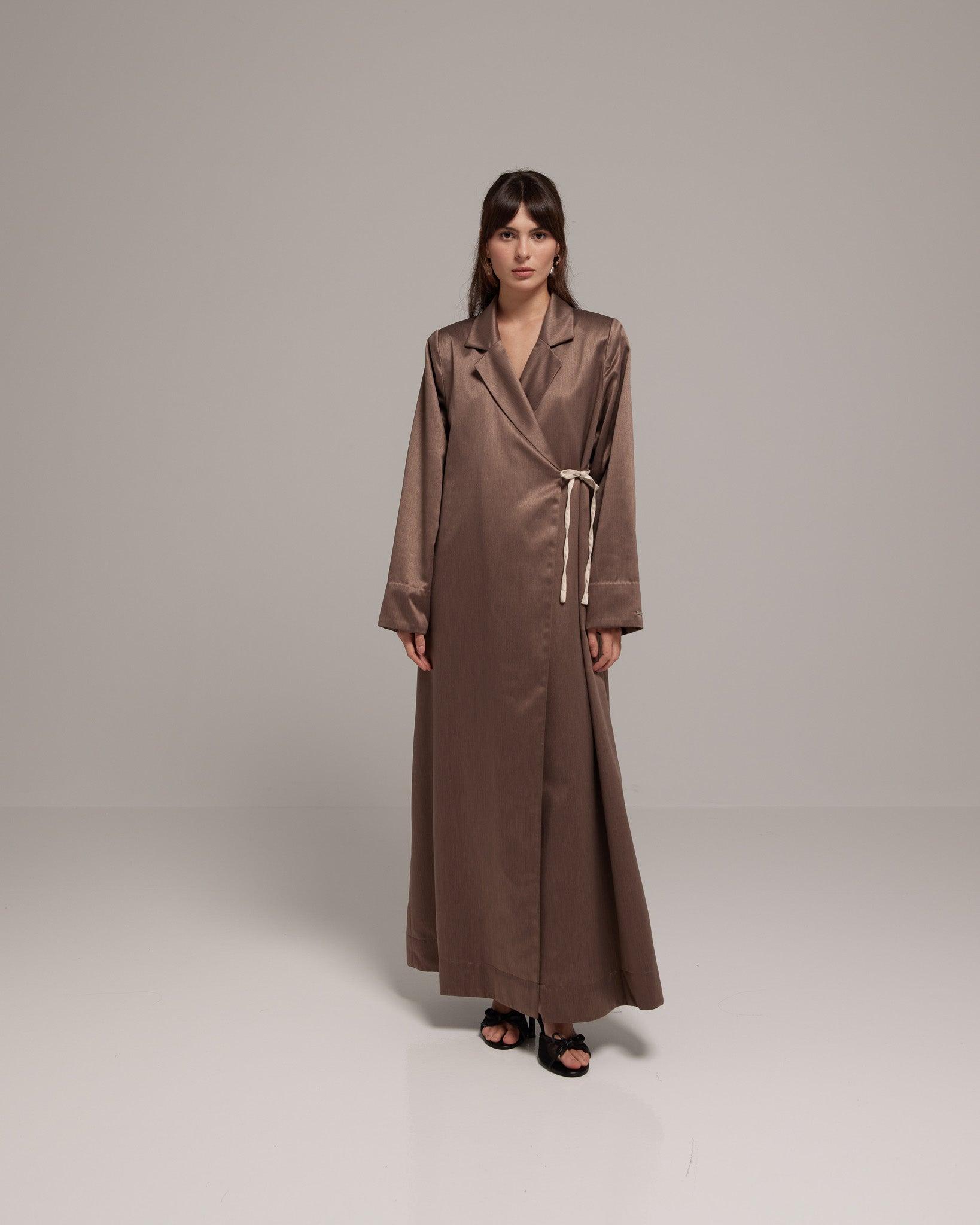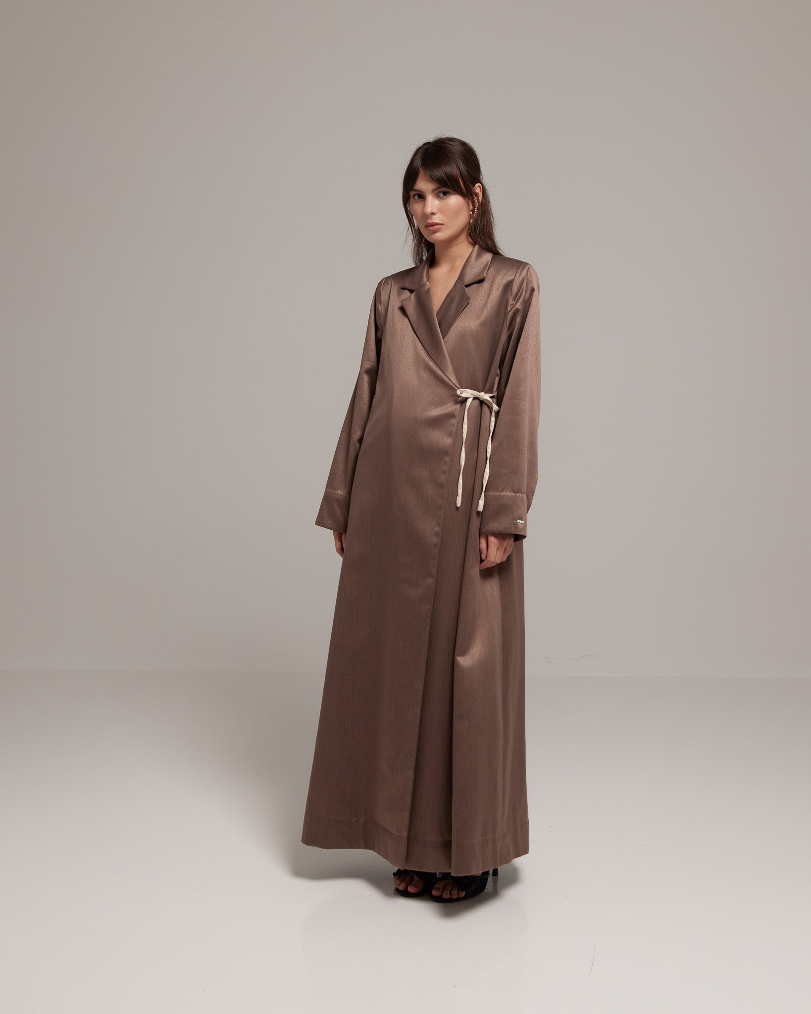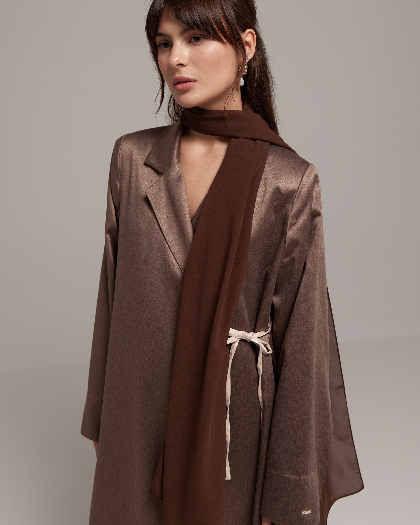 Takara Hazel, is a stunning creation that harmoniously blends light and dark elements for an unforgettable fashion statement. Crafted from a luxurious hazel brown jacquard. It is the defining feature of Elegant Contrast.
