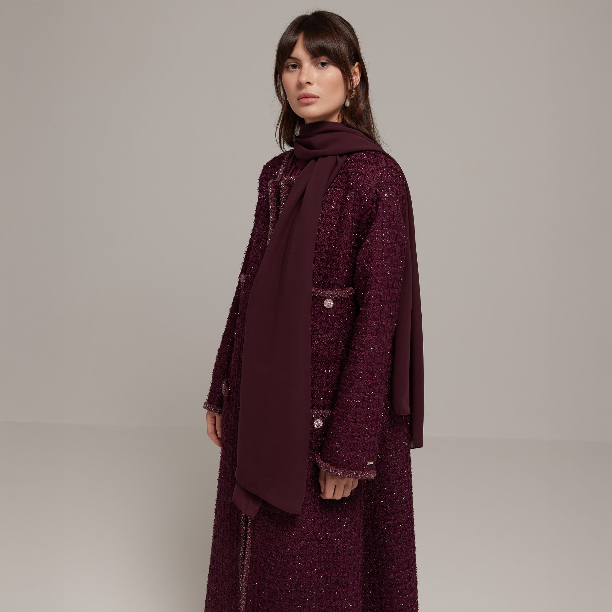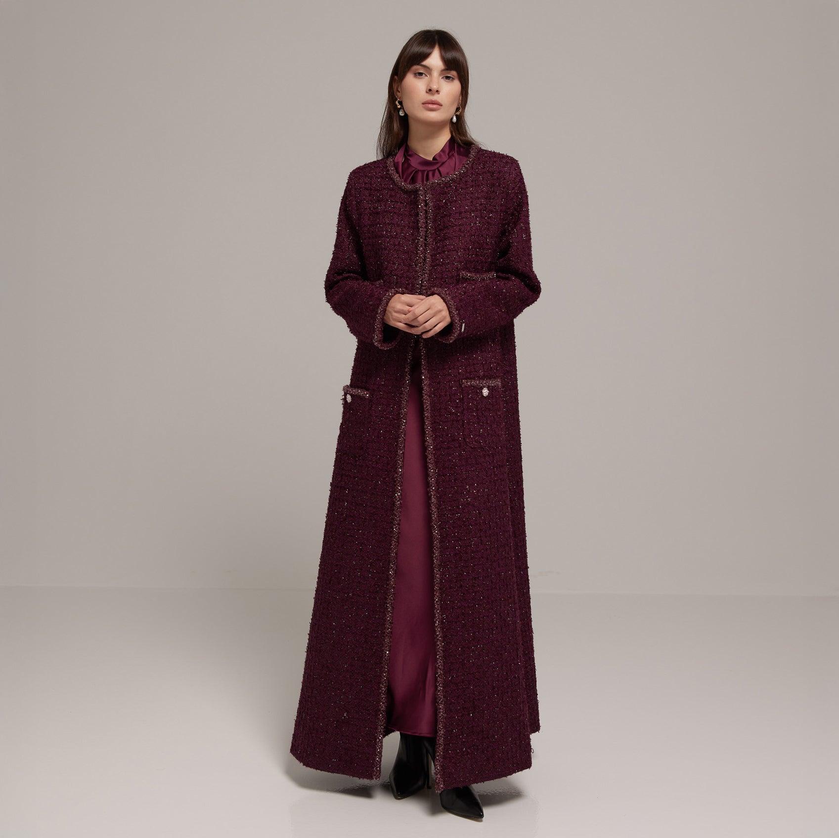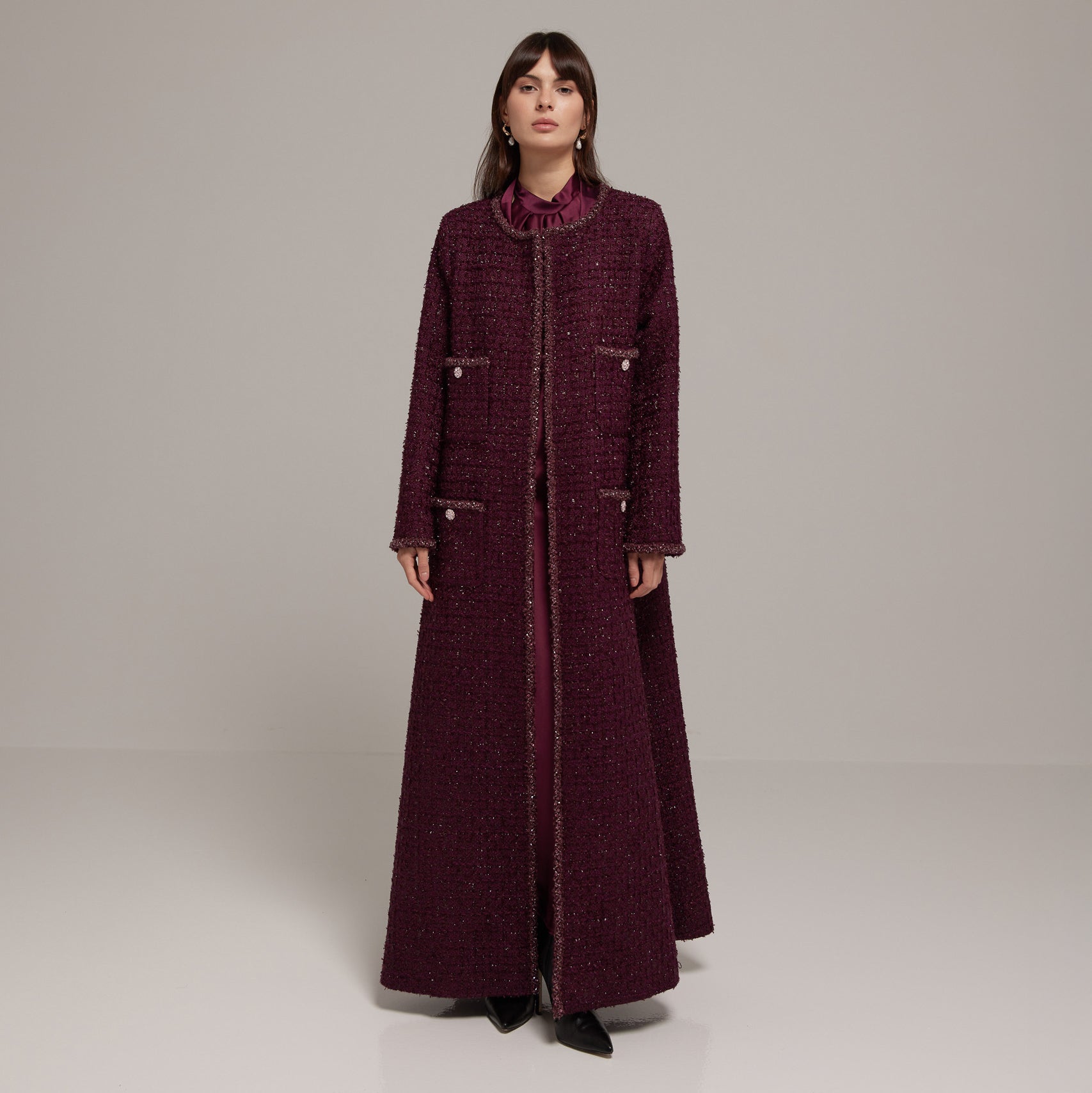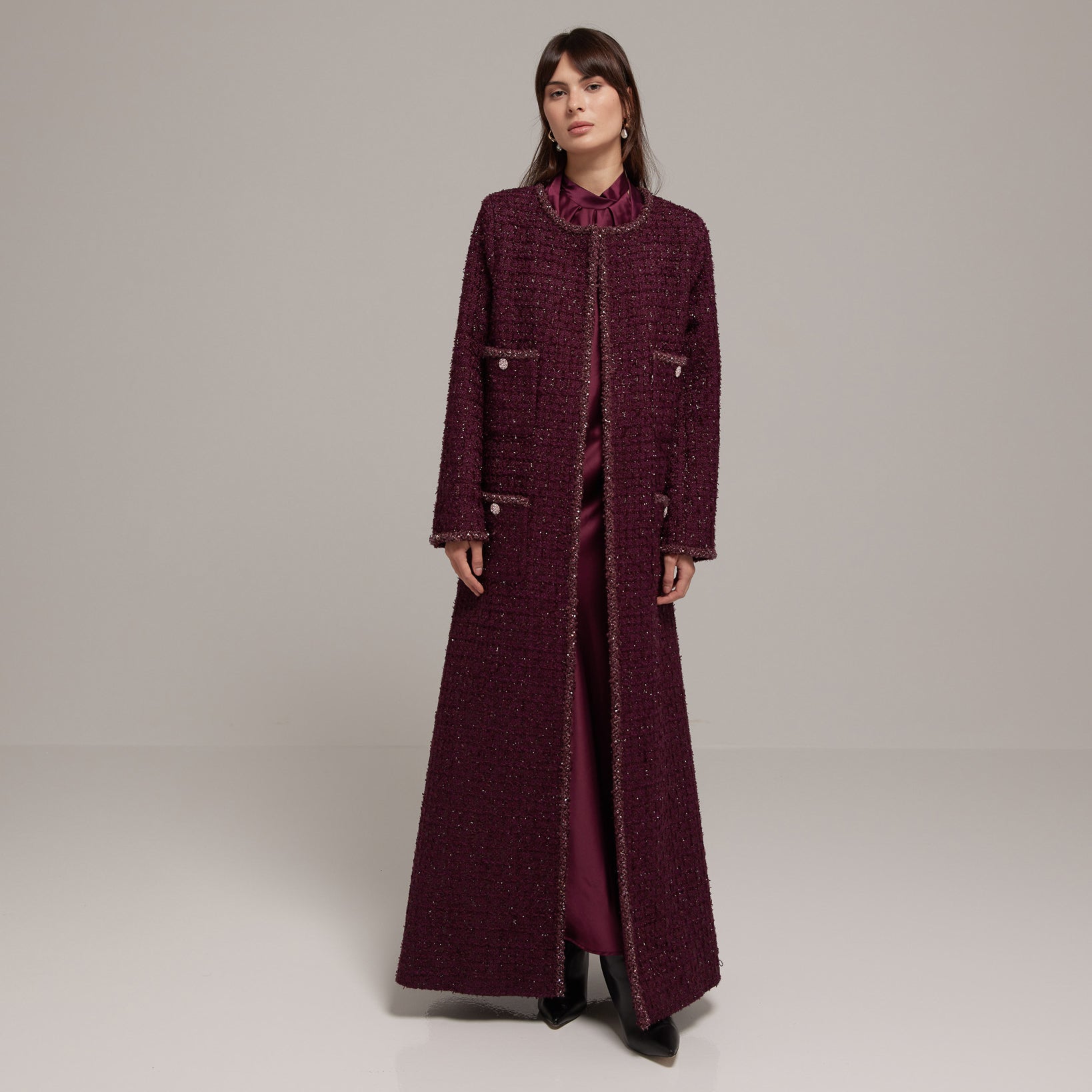 Crafted in rich tweed, this atelier piece reflects Takara’s approach to winter dressing through structure, texture, and restraint. Designed as a statement of timeless elegance, it carries a strong yet refined presence.
