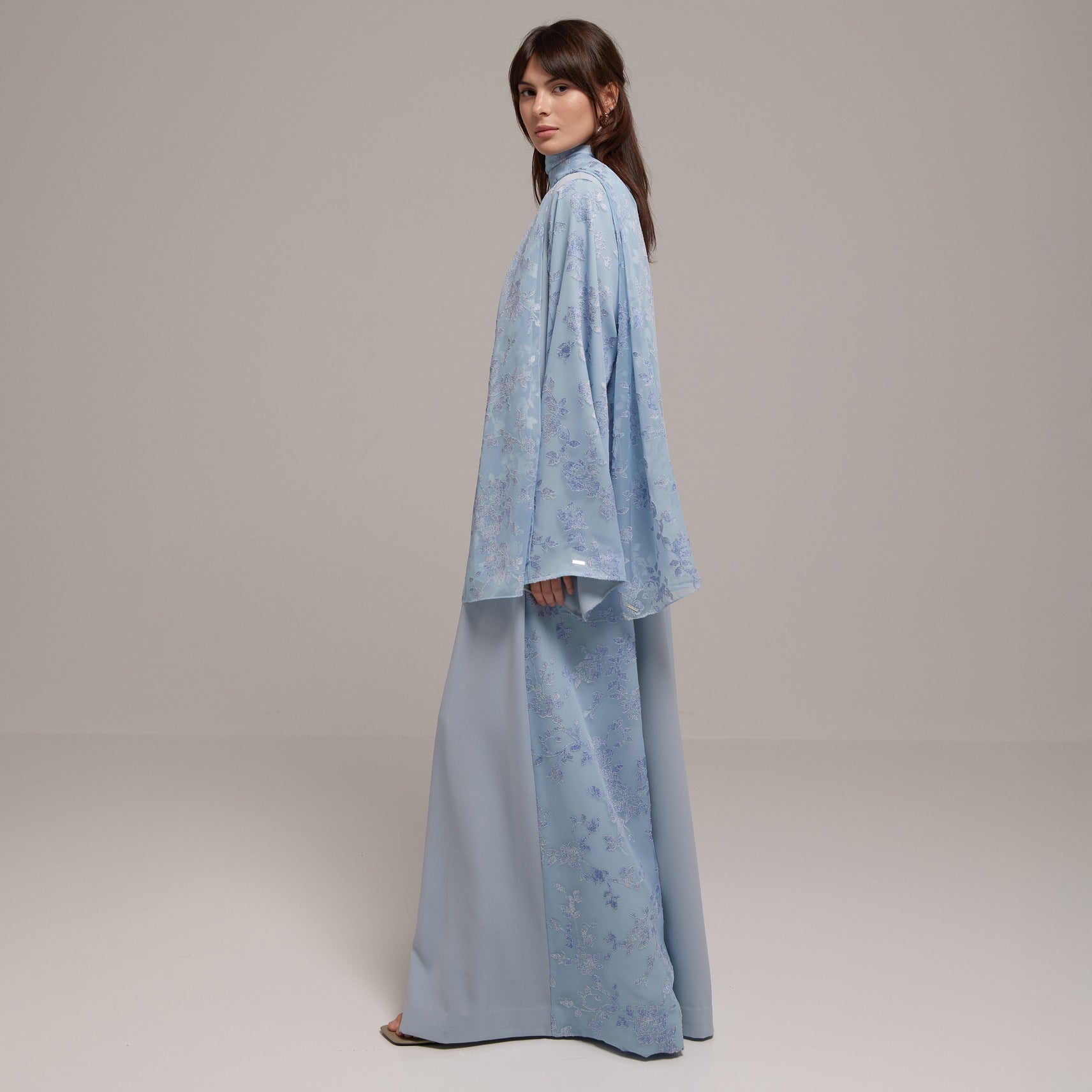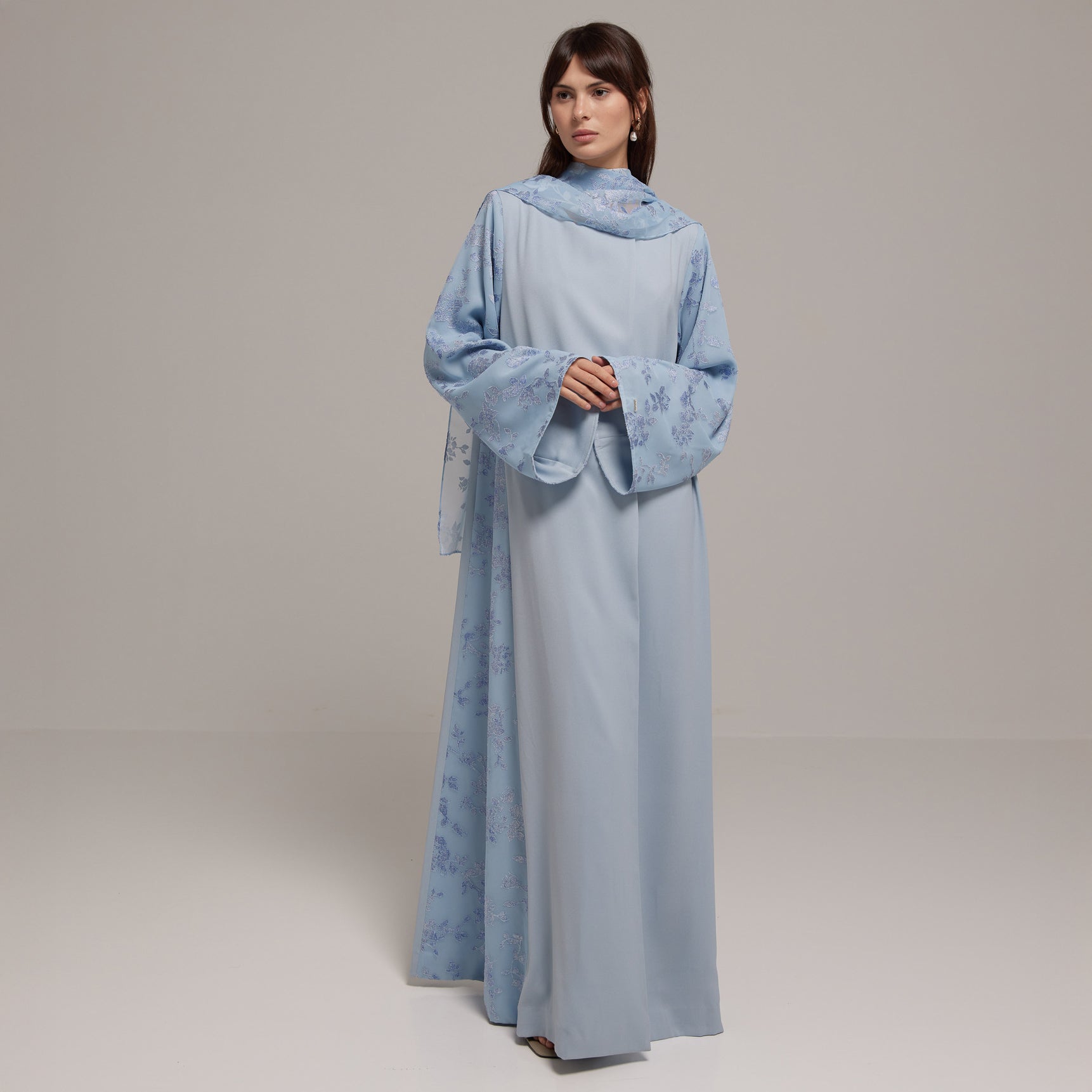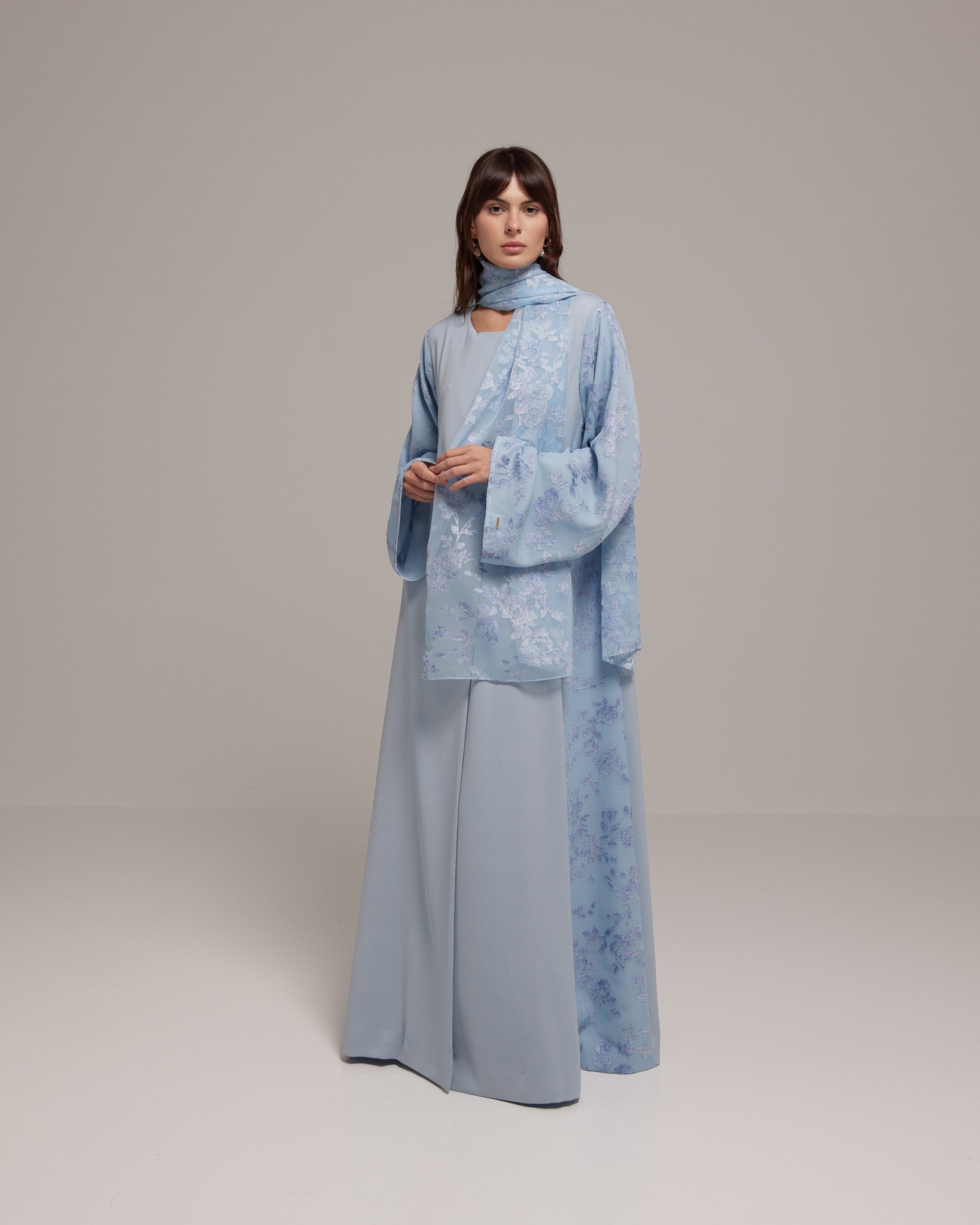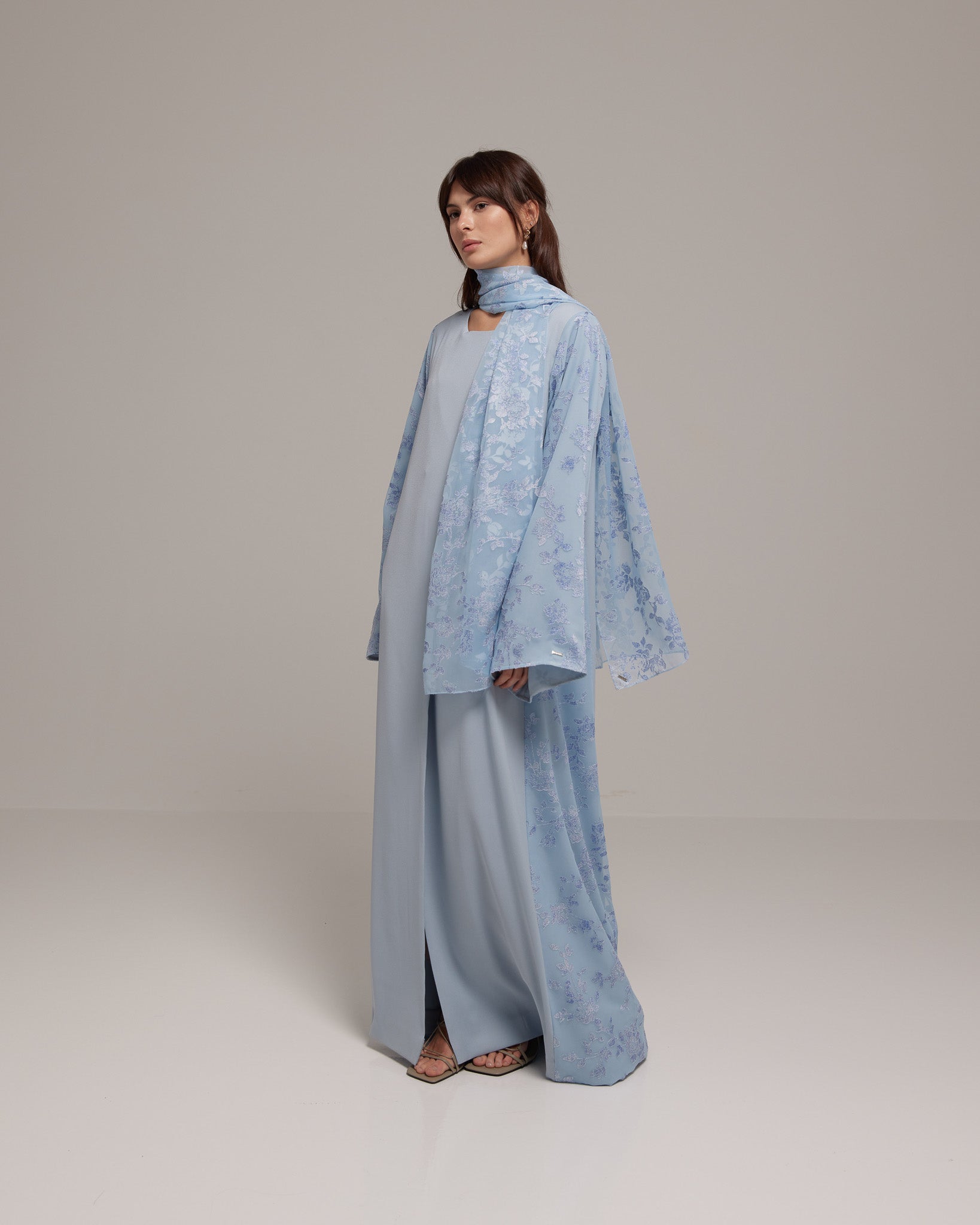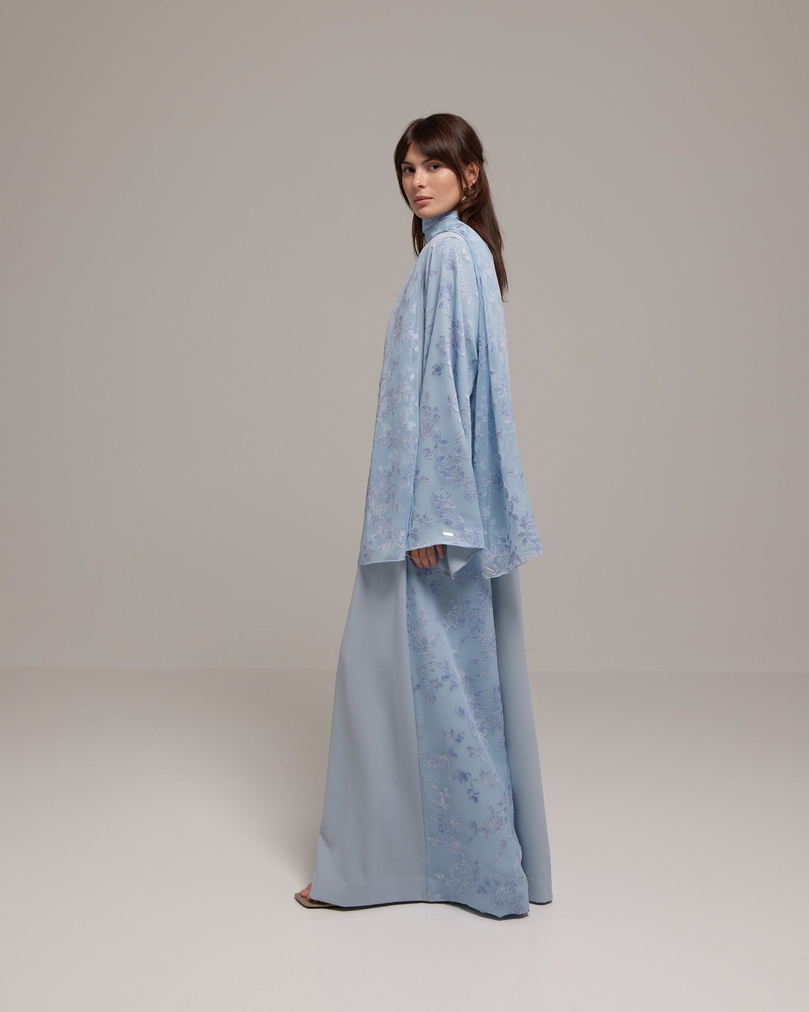 Crafted from a lightweight Tencel™ floral fabric, this design offers soft, graceful movement with a breathable, refined feel. Paired with a matching floral sheila for effortless femininity.