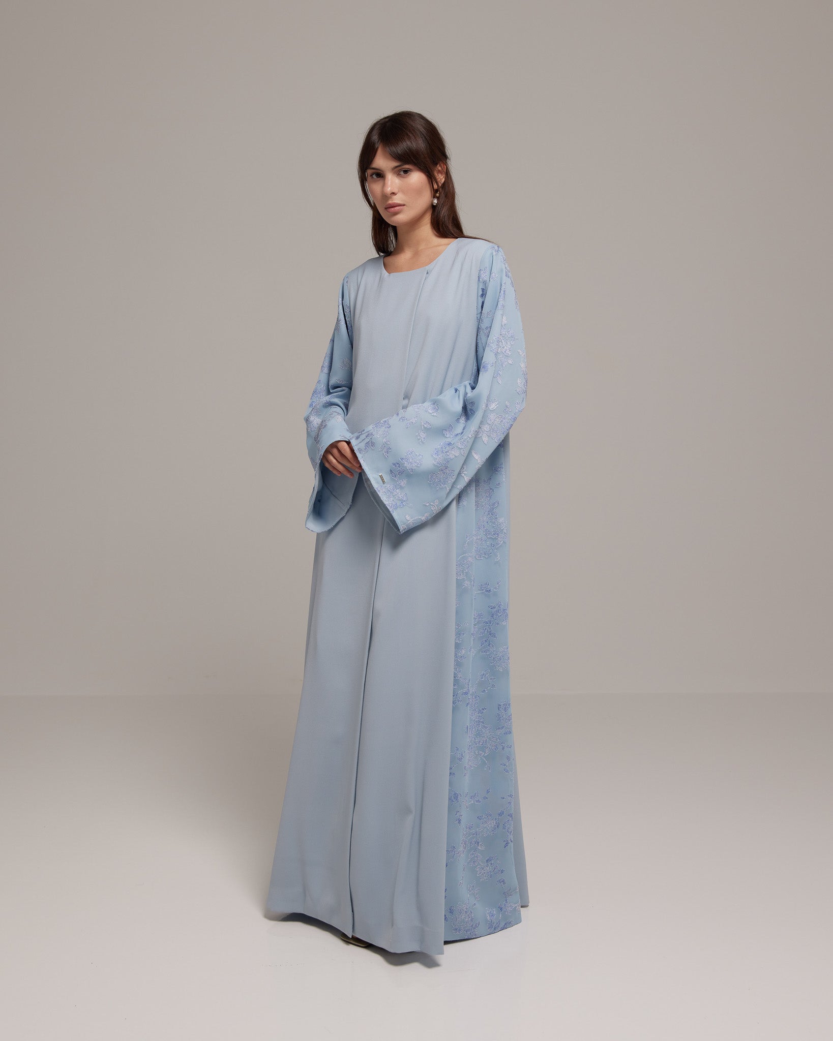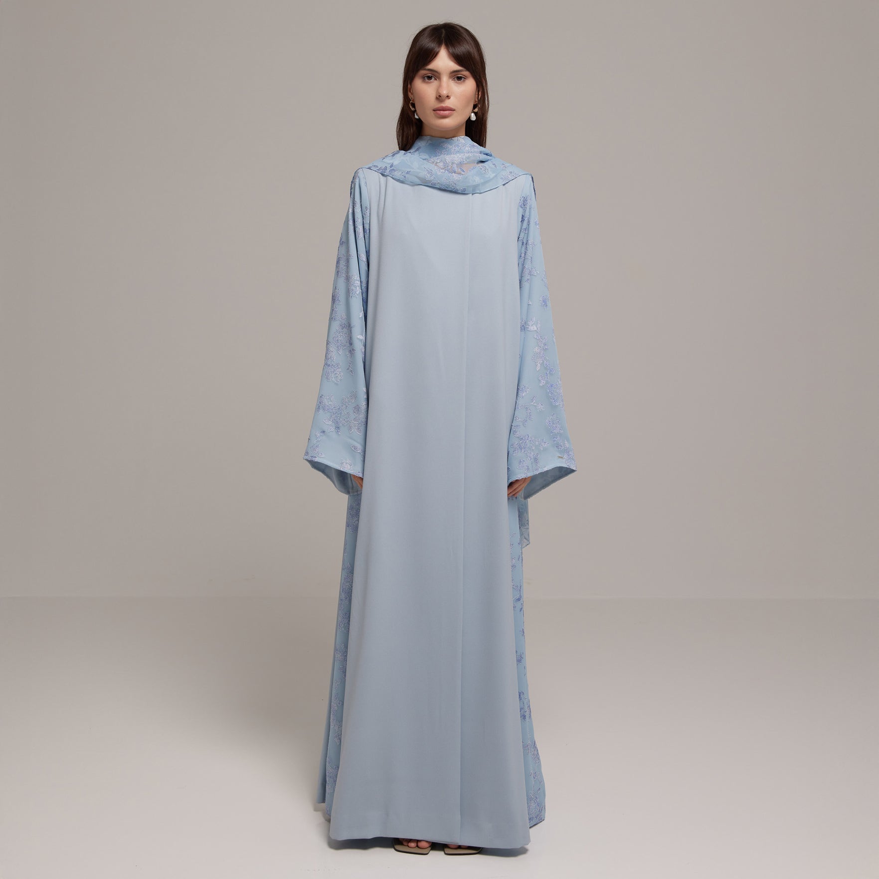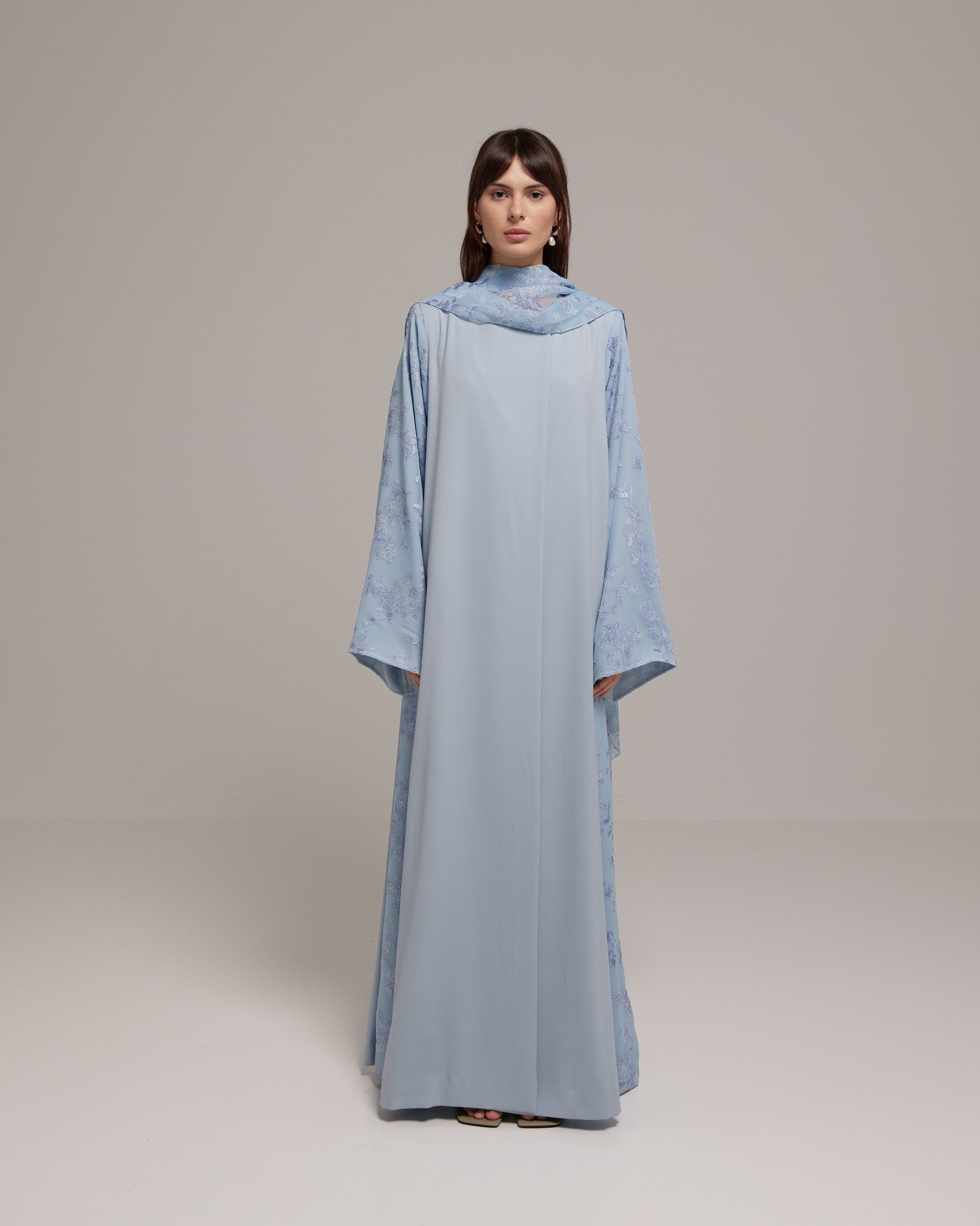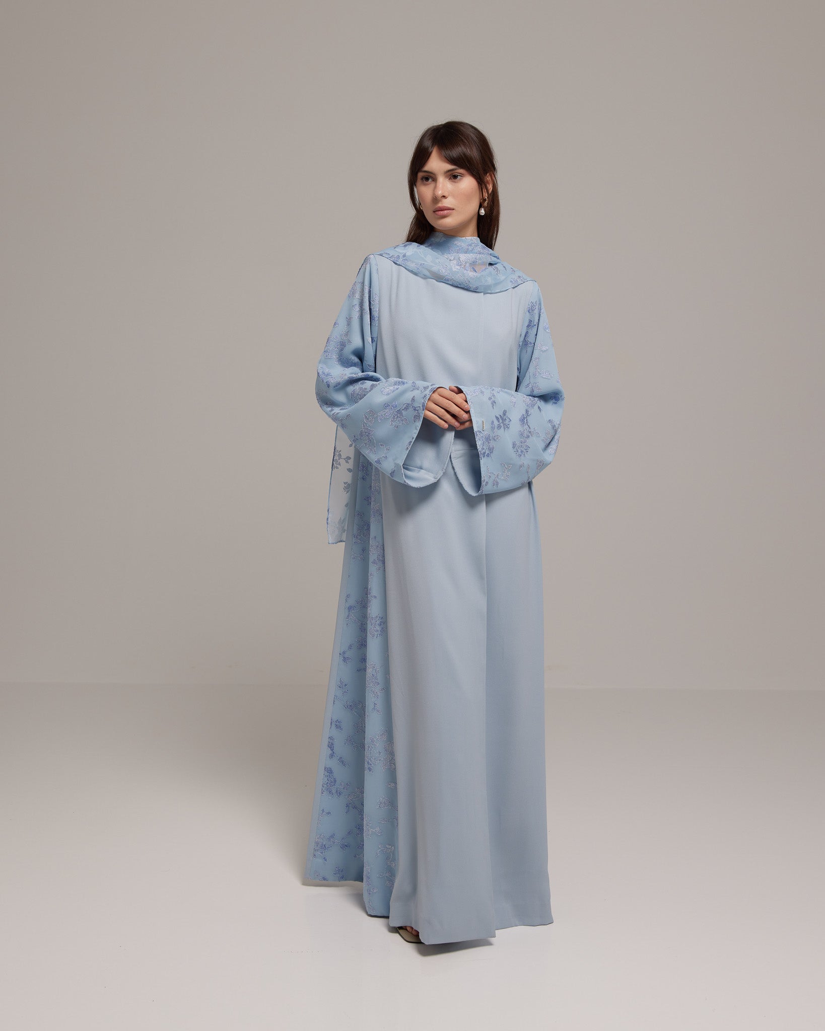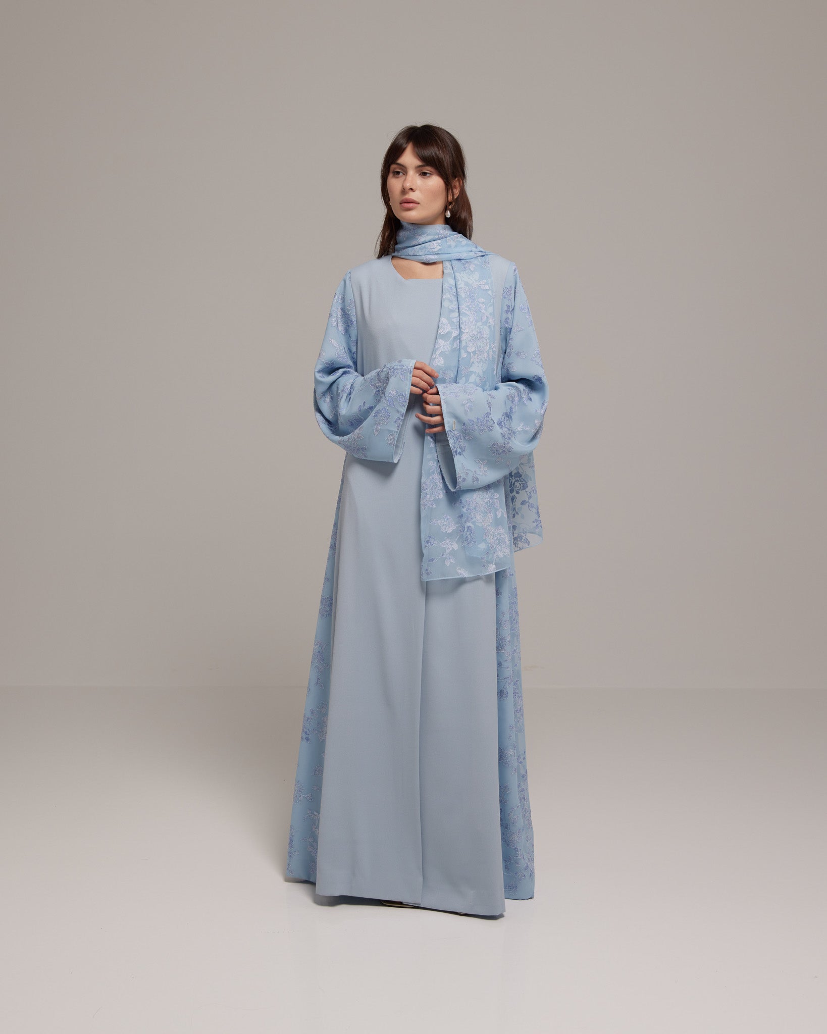Crafted from a lightweight Tencel™ floral fabric, this design offers soft, graceful movement with a breathable, refined feel. Paired with a matching floral sheila for effortless femininity.